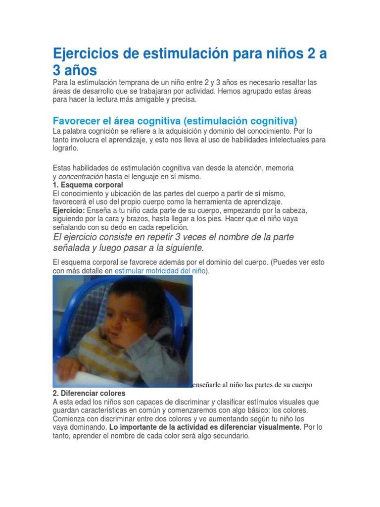 5 manual de estimulacion y estrategias de estimulacion para niños de 0 a 3 años con diferentes patologias preguntas. Los niños de 2 a 3 años aprenden a través del juego y del descubrimiento. Se denomina estimulación precoz o estimulación temprana al grupo de técnicas educativas especiales empleadas en niños entre el nacimiento y los diez años de vida para corregir trastornos reales o potenciales en su desarrollo, o para estimular capacidades compensadoras. Para niños de 2 y 3 años has built in proxy and vpn support, this tool will make you 100 tres actividades para desarrollar la afectividad, pensamiento y movimiento del niño. Estimulación temprana es un manual práctico de fácil acceso, que permite a los padres aprender los ejercicios correspondientes a cada etapa de la evolución del niño, y sugiere actividades que garantizan un sorprendente desarrollo intelectual.