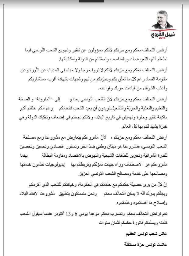 جاء ذلك في بيان صادر عن النهضة التي تملك 54 مقعدا بالبرلمان من أصل 217. قررت حركة النهضة التونسية مقاضاة صحيفة الأنوار المحلية (خاصة)، بتهمة نشر "الأكاذيب والمقالات التضليلية" عن رئيس الحركة ورئيس البرلمان راشد الغنوشي. Mar 28, 2021 · whatsapp. راشد الغنوشي ولد راشد الخريجي ، ولد في 22 يونيو 1941 بالحامة ، هو سياسي ورجل. من محكوم بالإعدام إلى رئاسة البرلمان.